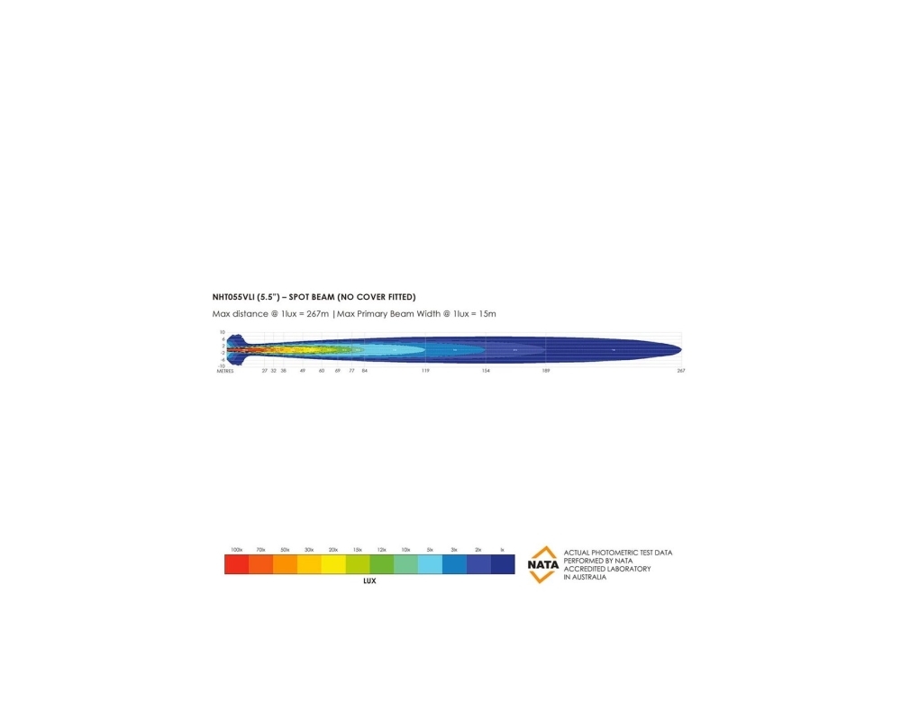 - Distancia máxima a 1 lux (Spot): 267 m