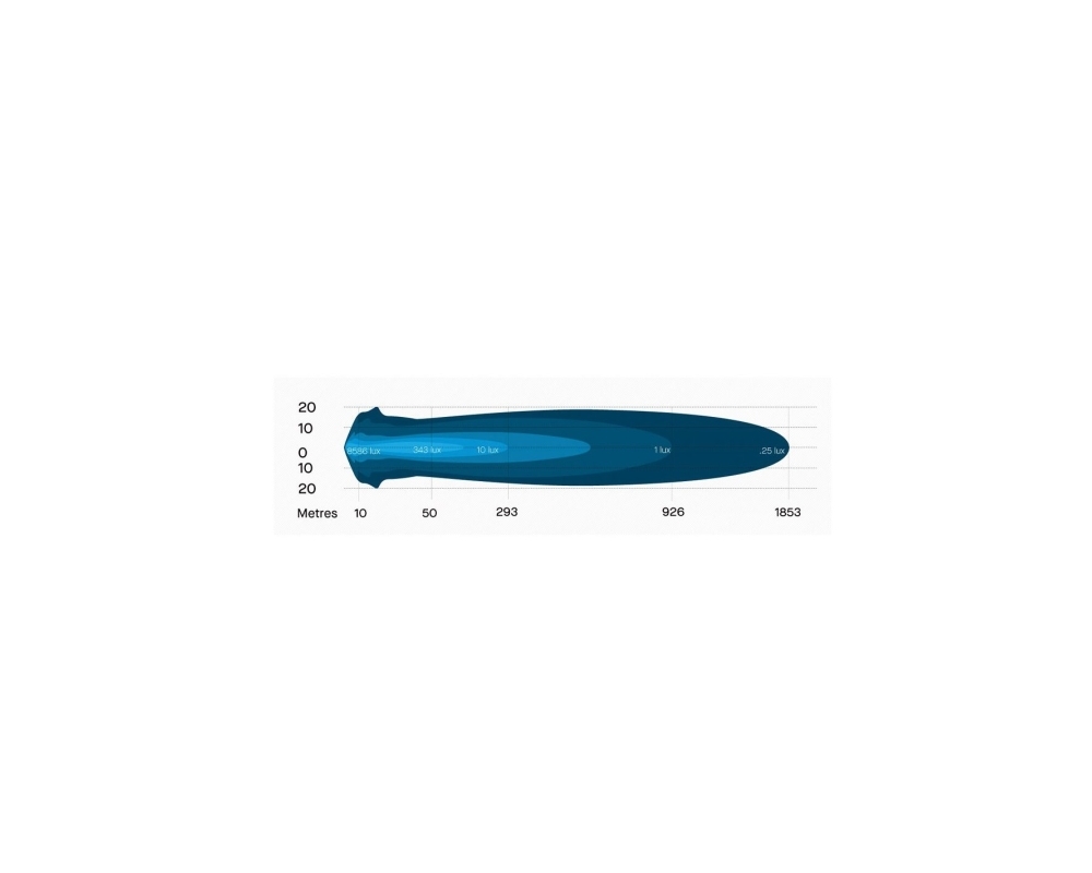 Para proporcionar una intensa cantidad de luz en todas las condiciones de conducción, la barra de luz AR40 Intensity V2 utiliza LED OSRAM para producir hasta 25.080 lúmenes de salida de luz sin procesar (AR40CV2). Para un solo combo AR40CV2, supone un alcance de 926 m @ 1Lux y 40 m de extensión en la parte delantera del vehículo. Además, la temperatura de color más cálida (5700K) ayuda a la comodidad del conductor y reduce la fatiga ocular.