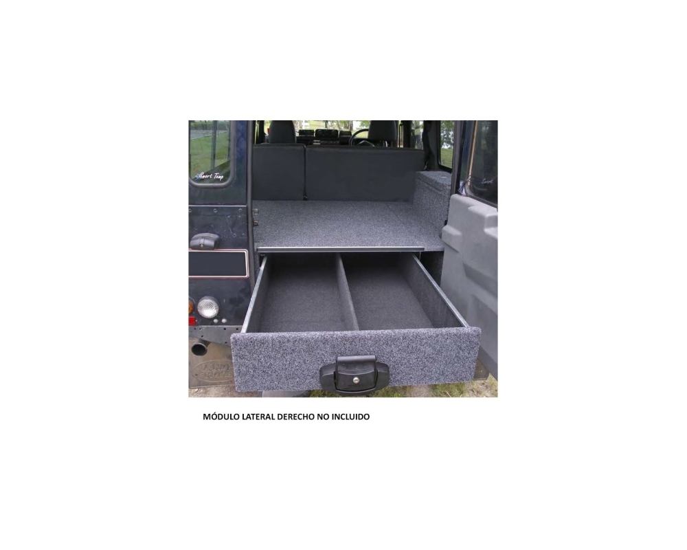 Esta cajonera es específica para modelos Defender de Land Rover y cuenta con un solo cajón y un divisor para dividir en dos compartimentos. Este modelo de cajonera no admite bandeja deslzante para nevera.