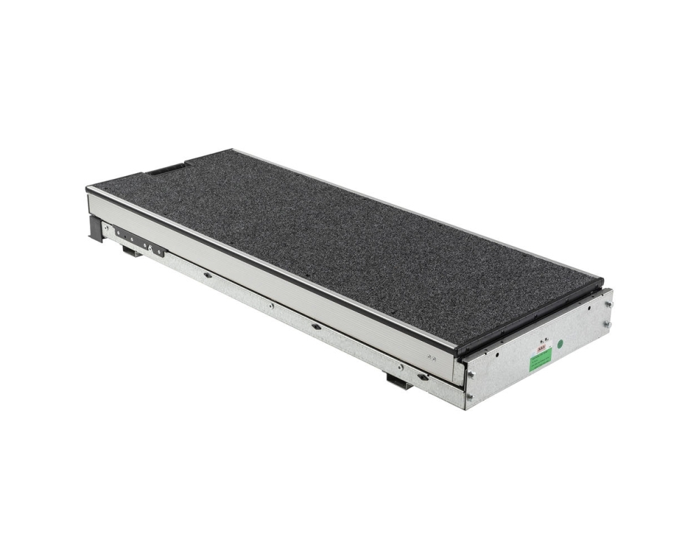 Roller Floor es un nuevo producto fantástico. El Roller Floor se sitúa a sólo 140 mm del suelo del vehículo, lo que permite un montaje más bajo y un acceso más fácil a elementos como frigoríficos o cajas de herramientas. El Roller maximiza el espacio de almacenamiento con una bandeja deslizante incorporada. Cuando no aloja un frigorífico, el Roller Floor tiene una parte superior plana que resulta mucho más cómoda para colocar otros objetos que una bandeja deslizante de acero tradicional para frigoríficos. ¿Ha intentado alguna vez colocar la compra encima de una bandeja de frigorífico tradicional?