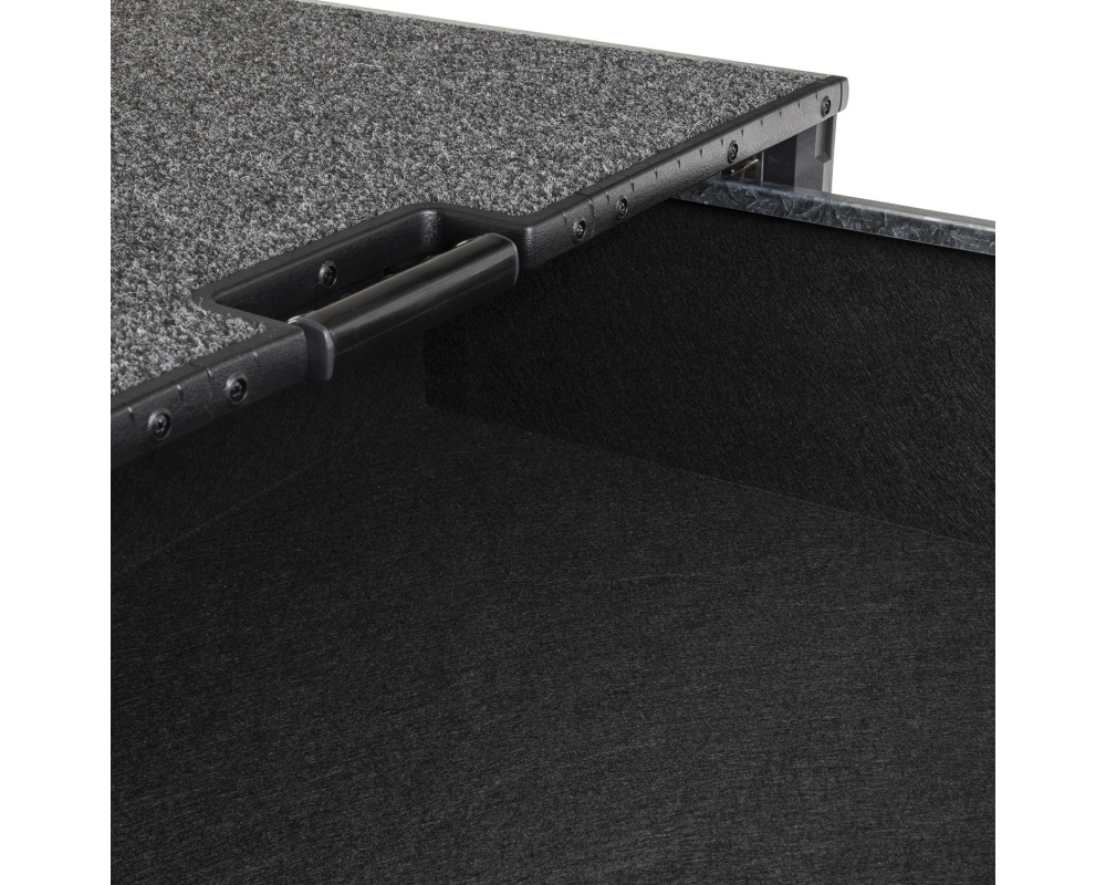 Las superficies exteriores están acabadas con moqueta comercial resistente y las interiores están tapizadas con moqueta de maletero. Ambos materiales resisten la abrasión y disimulan la suciedad en condiciones todoterreno difíciles.