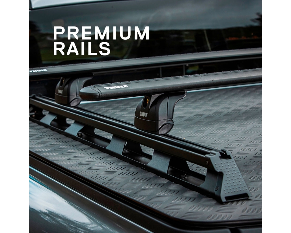 El diseño de los raíles "premium" mejoran la versatilidad e integración con una amplia gama de accesorios gracias al borde de "cola de milano" exterior (igual que las bacas Base Rack). Además, en la parte superior se pueden instalar barras transversales o un bastidor BASE Rack.