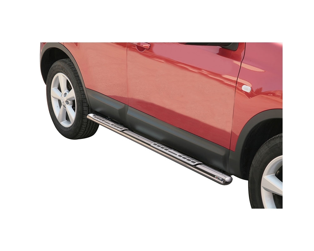 ESTRIBOS EN TUBO INOX, SECCIÓN OVAL, CON PISANTES. TIPO DSP PARA NISSAN QASHQAI 2007-2010