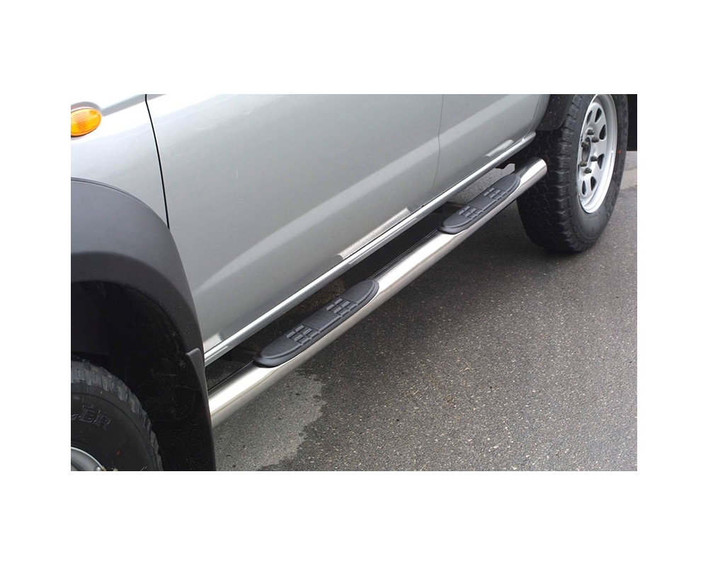 ESTRIBOS EN TUBO INOX Ø76MM, CON PISANTES PARA NISSAN NAVARA D22 2002-2005 (DOBLE CABINA)