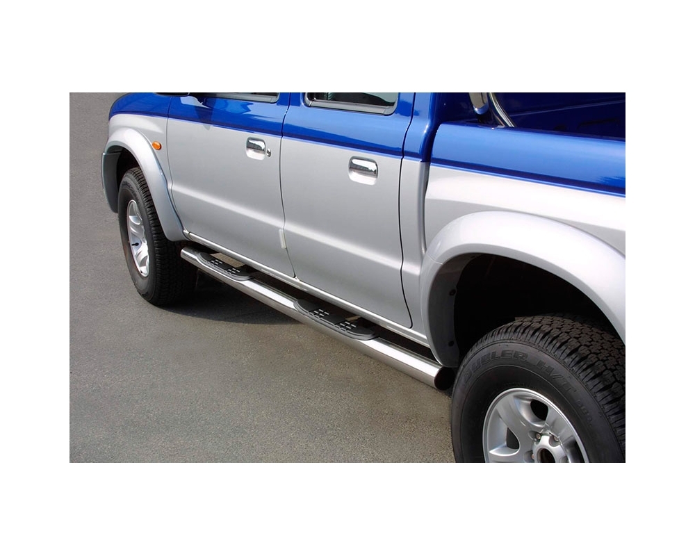 ESTRIBOS EN TUBO INOX Ø76MM, CON PISANTES PARA MAZDA B-2500 1999-2006 (SOLO 2003-2006; DOBLE CABINA)