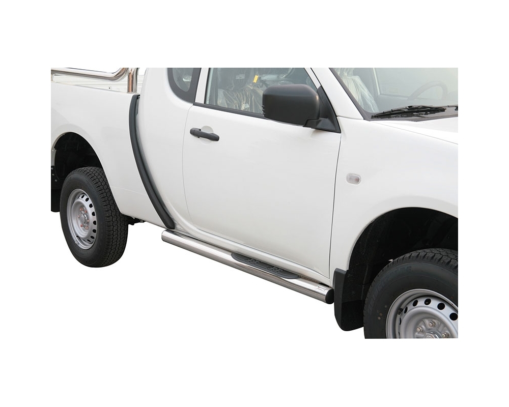 ESTRIBOS EN TUBO INOX Ø76MM, CON PISANTES PARA MITSUBISHI L200 TRITON 2010-2015 (EXTRA CABINA)