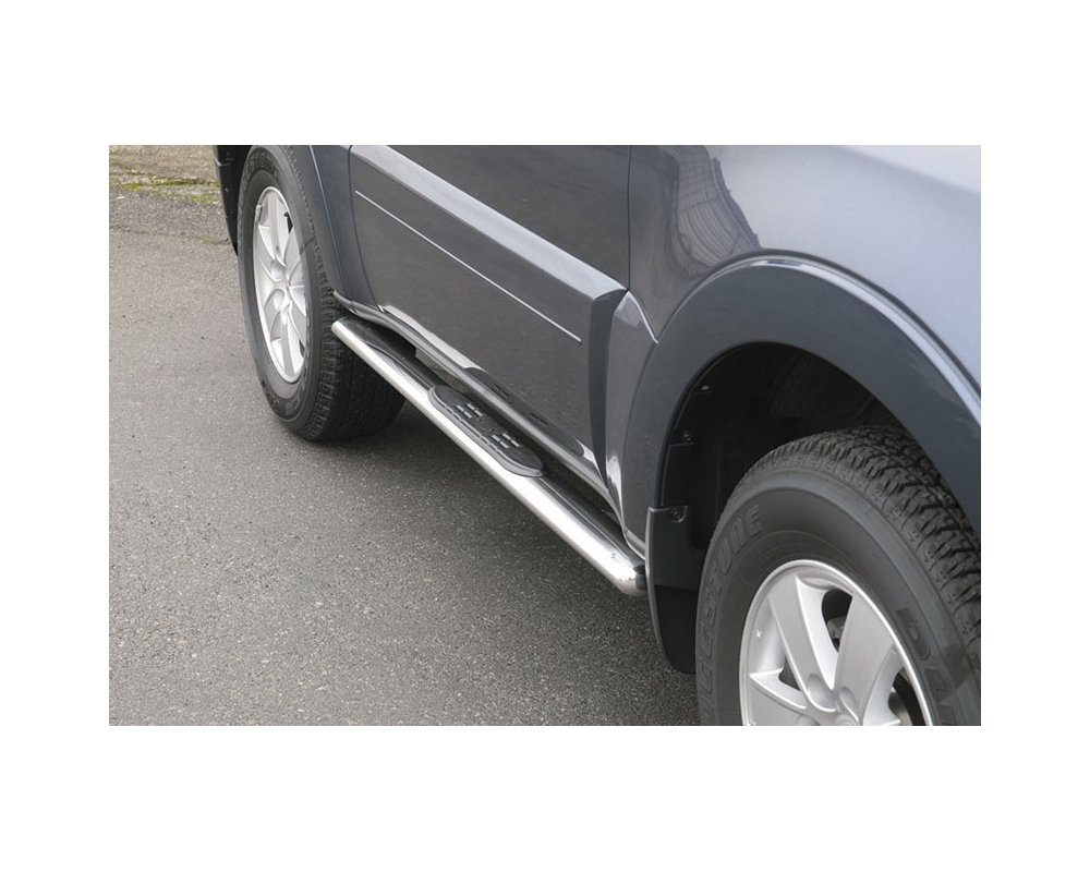 ESTRIBOS EN TUBO INOX, SECCIÓN OVAL, CON PISANTES PARA MITSUBISHI MONTERO V80 2007-2019 (3 PUERTAS)
