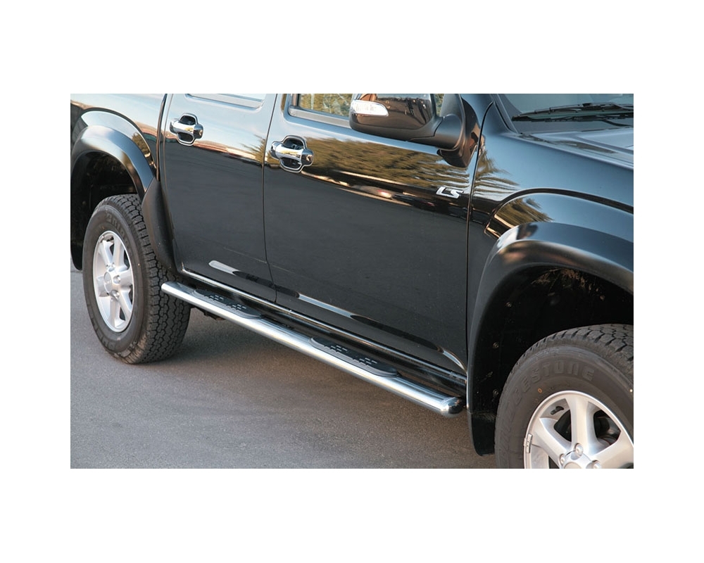 ESTRIBOS EN TUBO INOX, SECCIÓN OVAL, CON PISANTES PARA ISUZU D-MAX/RODEO 2002-2012 (SOLO 2007-2012; DOBLE CABINA)
