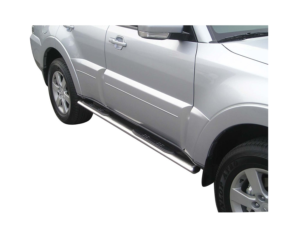 ESTRIBOS EN TUBO INOX, SECCIÓN OVAL, CON PISANTES PARA MITSUBISHI MONTERO V80 2007-2019 (5 PUERTAS)