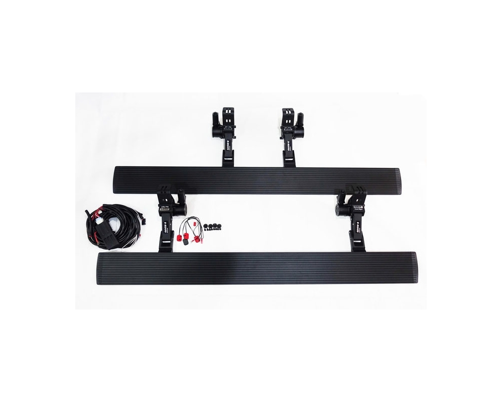 Consiguen una estética y comodidad única. Se conectan a las puertas del vehículo, cuando se abren las puertas bajan automáticamente, y vuelven a subir una vez que estas se cierran.