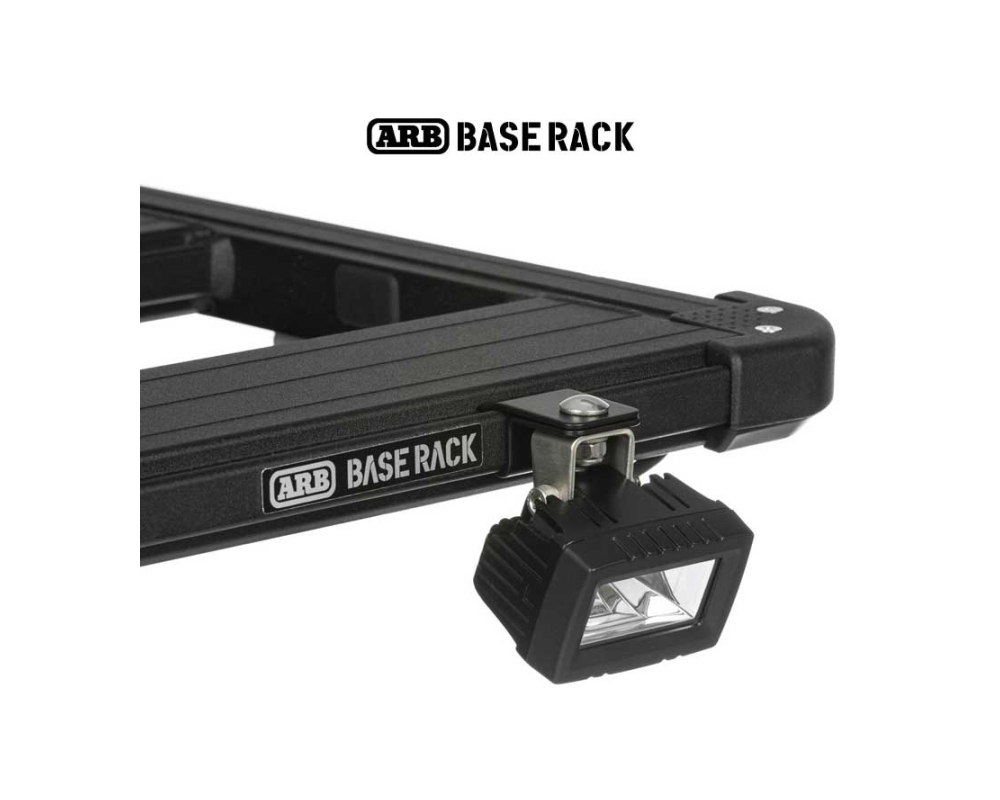 El exclusivo soporte ARB BASE Rack facilita el montaje en cualquier punto del perfil de bastidor Base Rack y es ideal para usos de ocio y acampada, trabajo, etc.