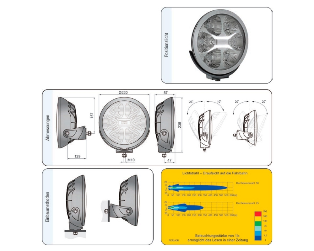 - Marcado de referencia: 25 (120lx a una distancia de 25m)