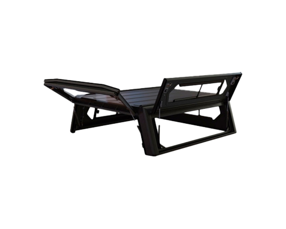Las grandes tapas laterales permiten un acceso rápido y sin obstáculos al interior, mientras que los compartimentos opcionales y las bandejas correderas ayudan a mantener el espacio ordenado. Además, la instalación se realiza mediante soportes específicos del vehículo, utilizando los puntos originales del Ranger sin necesidad de perforar (salvo excepciones en Land Cruiser).