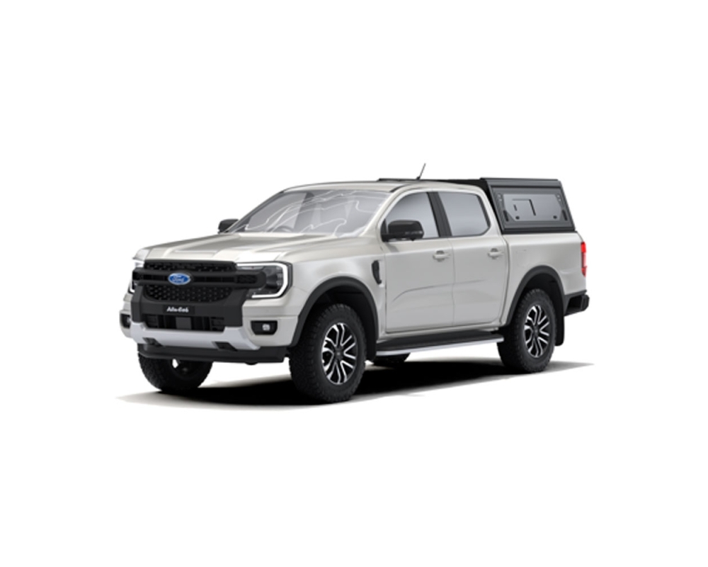 ALU-CAB | HARD-TOP "CONTOUR" PARA FORD RANGER (2023+) D/CAB CON VENTANAS LATERALES ABATIBLES Y CRISTAL DESLIZANTE.
