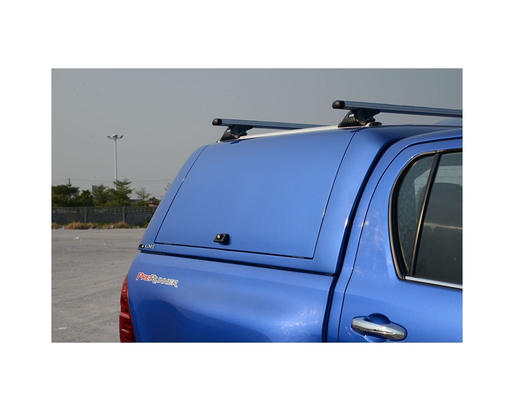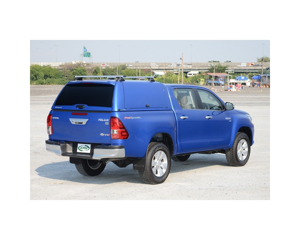 ALPHA | HARDTOP CMX EN FIBRA, CON PORTONES LATERALES ELEVABLES EN FIBRA (DOBLE CABINA) PARA TOYOTA HILUX REVO 2016-