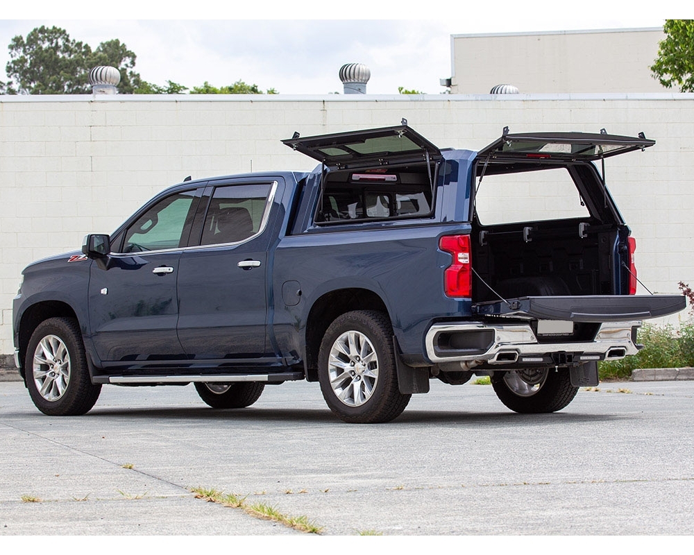 Diseño angular, cristales tintados, portones laterales con cerraduras de pulsador, carriles universales de carga integrados, tercera luz de freno. El SmartCAP EVO brinda una nueva estética robusta e imponente a tu pick-up.
