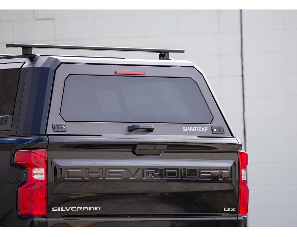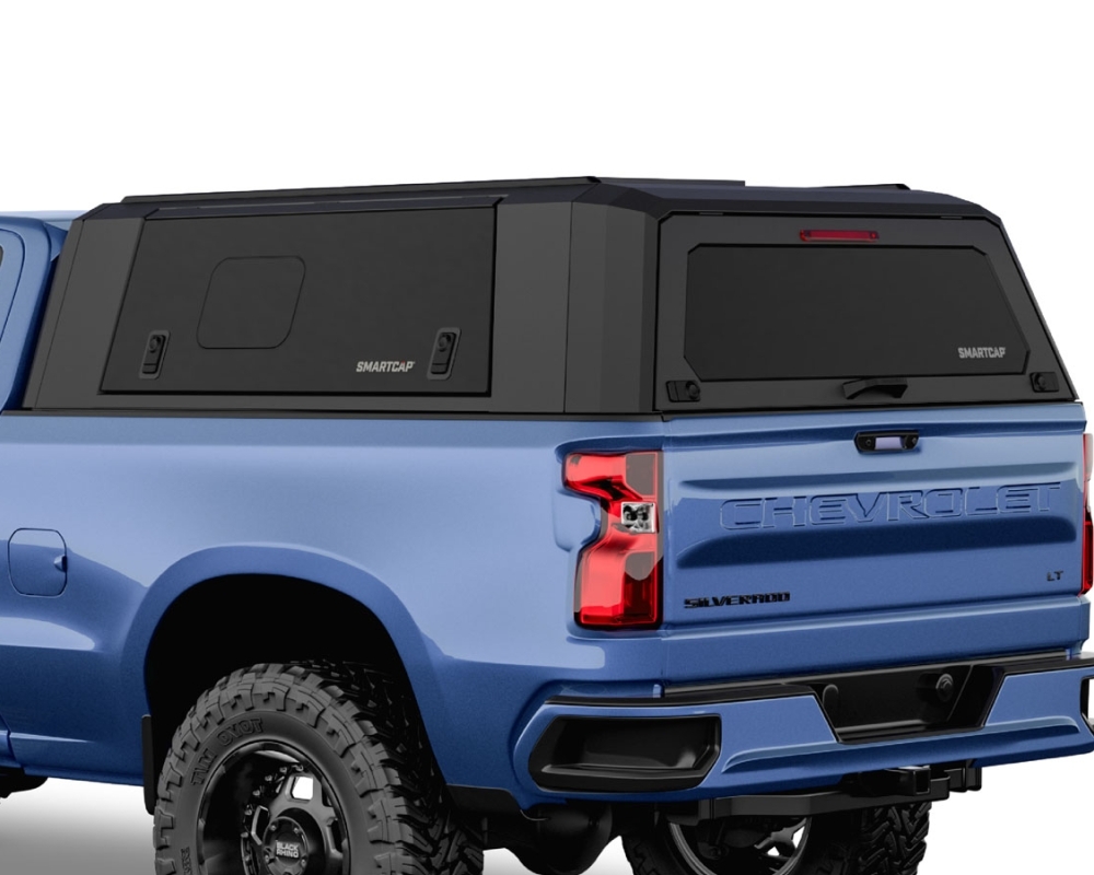 Diseño angular, cristales tintados, portones laterales con cerraduras de pulsador, carriles universales de carga integrados, tercera luz de freno. El SmartCAP EVO brinda una nueva estética robusta e imponente a tu pick-up.