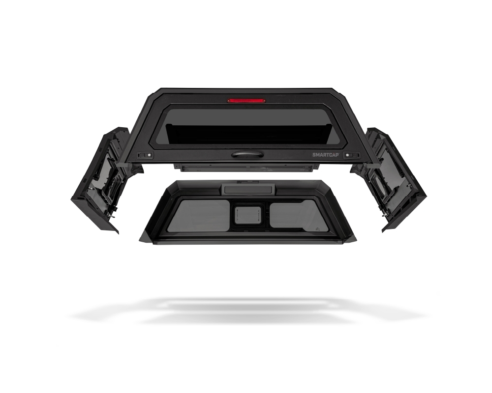 Diseño angular, cristales tintados, portones laterales con cerraduras de pulsador, carriles universales de carga integrados, tercera luz de freno. El SmartCAP EVO brinda una nueva estética robusta e imponente a tu pick-up.