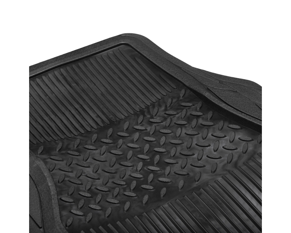 Fabricadas en goma sólida, que ayuda a conservar la integridad y la forma. Muy fáciles de limpiar con agua a presión. El controno de la alfombra está formado por una cresta que se ocupa de mantener los restos desprendidos del calzado en el interior. La parte inferior de la alfombrilla tiene pequeñas puntas para evitar que la alfombrilla se deslice. De tamaño generoso, también se pueden recortar para un ajuste personalizado.