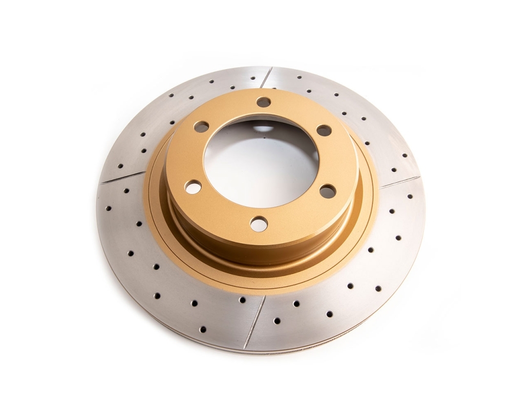 Los discos de freno X Gold combinan la fiabilidad de nuestra Serie Street con un diseño superior de perforaciones y ranuras no direccionales, con un acabado dorado llamativo en el cubo del disco.