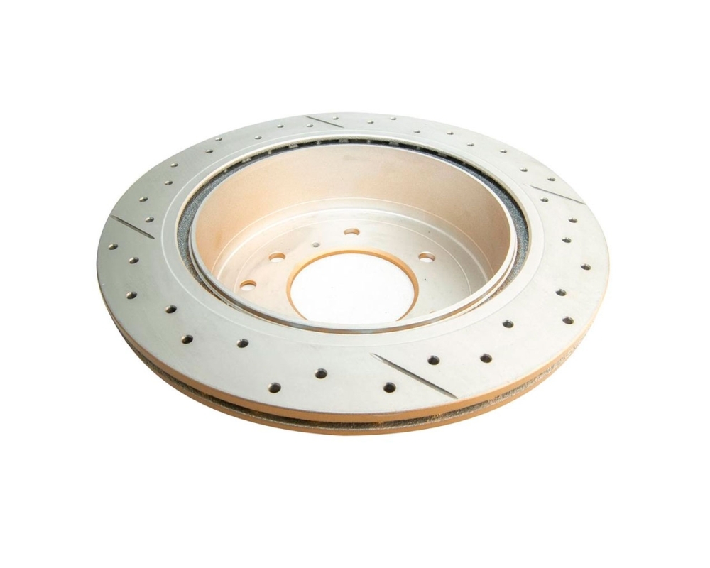 Los rotores de freno X Gold combinan la confiabilidad de nuestra Serie Street con un diseño ranurado y perforado transversalmente no direccional superior, con un llamativo acabado dorado en el cubo del rotor.