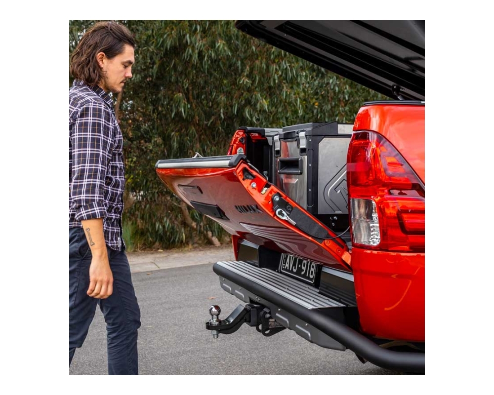 El asistente fabricado por ARB controla de forma segura la velocidad de apertura y reduce el esfuerzo requerido para su cierre.