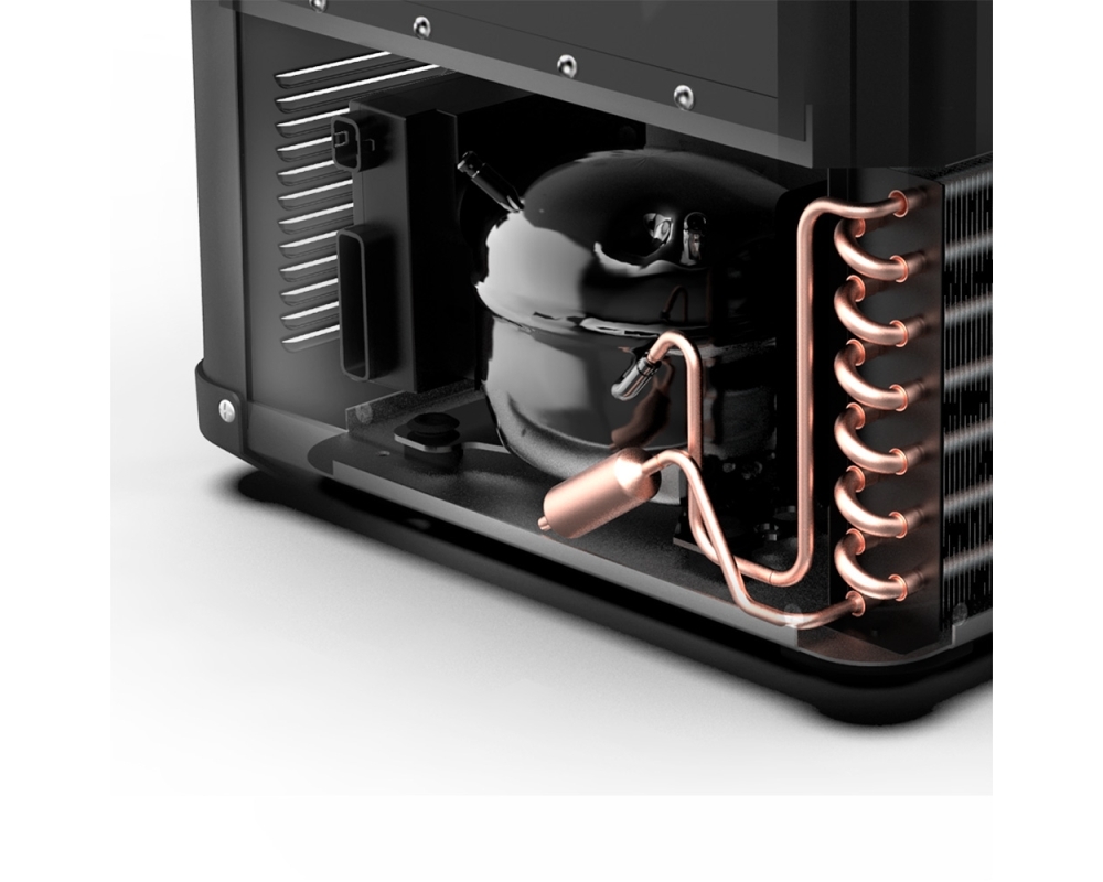 Con un peso de solo 31,5 kg y dimensiones de 93 × 47 × 46 cm, se adapta fácilmente a vehículos, furgonetas o campers. Su compresor SECOP Nano garantiza un rendimiento rápido y eficiente, con modos Eco y Max para optimizar el consumo energético.