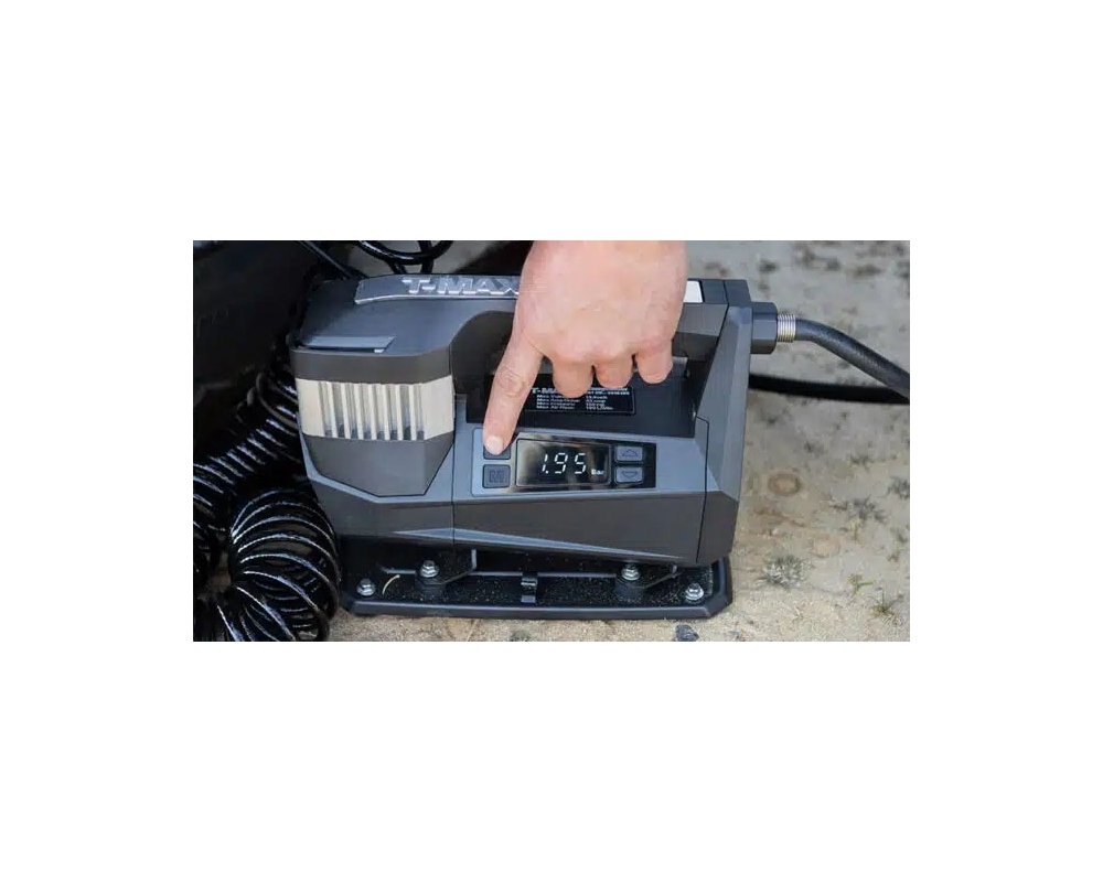 El T-MAX Storm Pump es el compresor de aire definitivo para todo amante del 4x4 que busque potencia, precisión y fiabilidad en cualquier terreno. Su motor de alto rendimiento permite inflar neumáticos de todoterreno, SUV, pickups y caravanas de forma rápida y segura, mientras que su carcasa metálica premium garantiza resistencia frente a condiciones extremas como barro, arena, nieve o superficies rocosas.