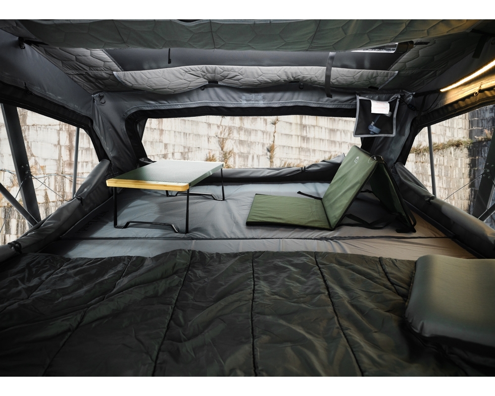 Se abre fácilmente tirando de la escalera, que va fija en la parte superior de la carcasa. Esta tienda ha superado las pruebas de viento y lluvia de nivel 7, lo que garantiza un uso adecuado con cualquier clima. Además, es posible instalar barras de techo permitiendo transportar bicicletas o tablas de surf.