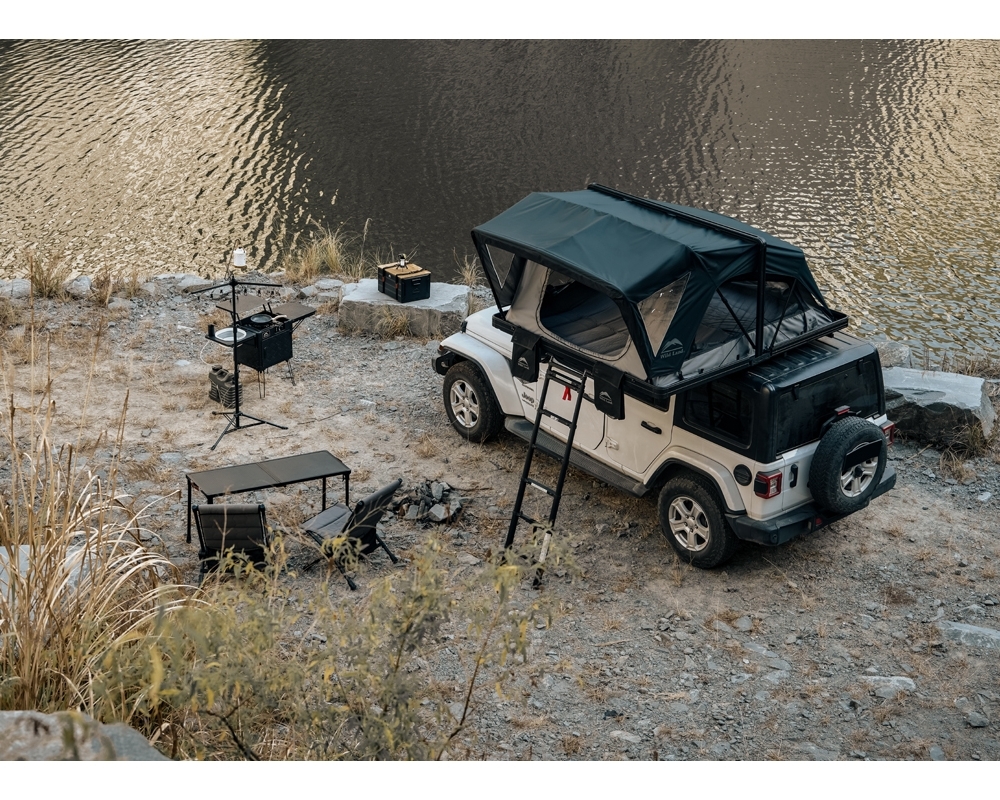 WildLand presenta su nueva tienda de techo Caramiña, un modelo que combina un diseño clásico de carcasa rígida con una apertura tipo libro.