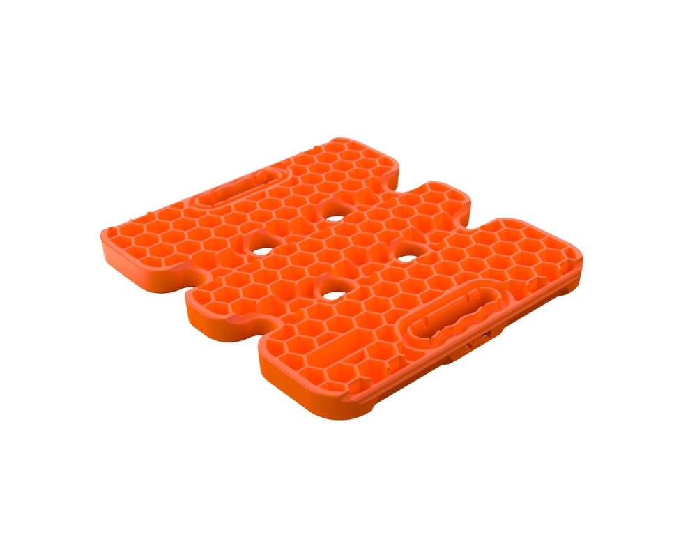 Diseñado para condiciones todoterreno, la base crea una plataforma estable para el uso de gatos de alta elevación en terrenos irregulares como arena, barro o grava. También puede soportar otros equipos donde se necesita una base adicional. Diseñado para mayor comodidad, se monta de forma segura en la parte inferior de sus tableros de recuperación, por lo que siempre está lleno, protegido y listo para funcionar.