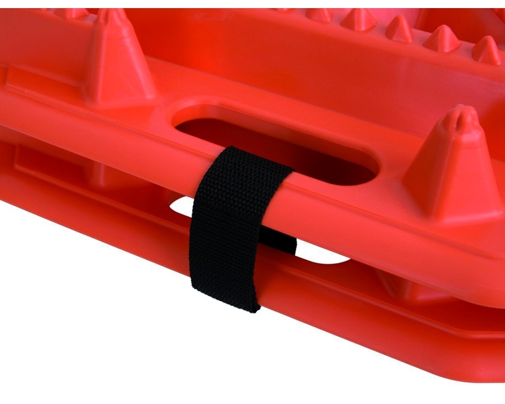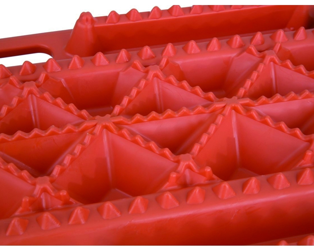 Expresamente indicadas para atascos en barro, arena, nieve y hielo. Coloca las planchas debajo de las ruedas motrices del vehículo y presiona ligeramante el acelador hasta que vaya subiendo el neumático a la plancha.