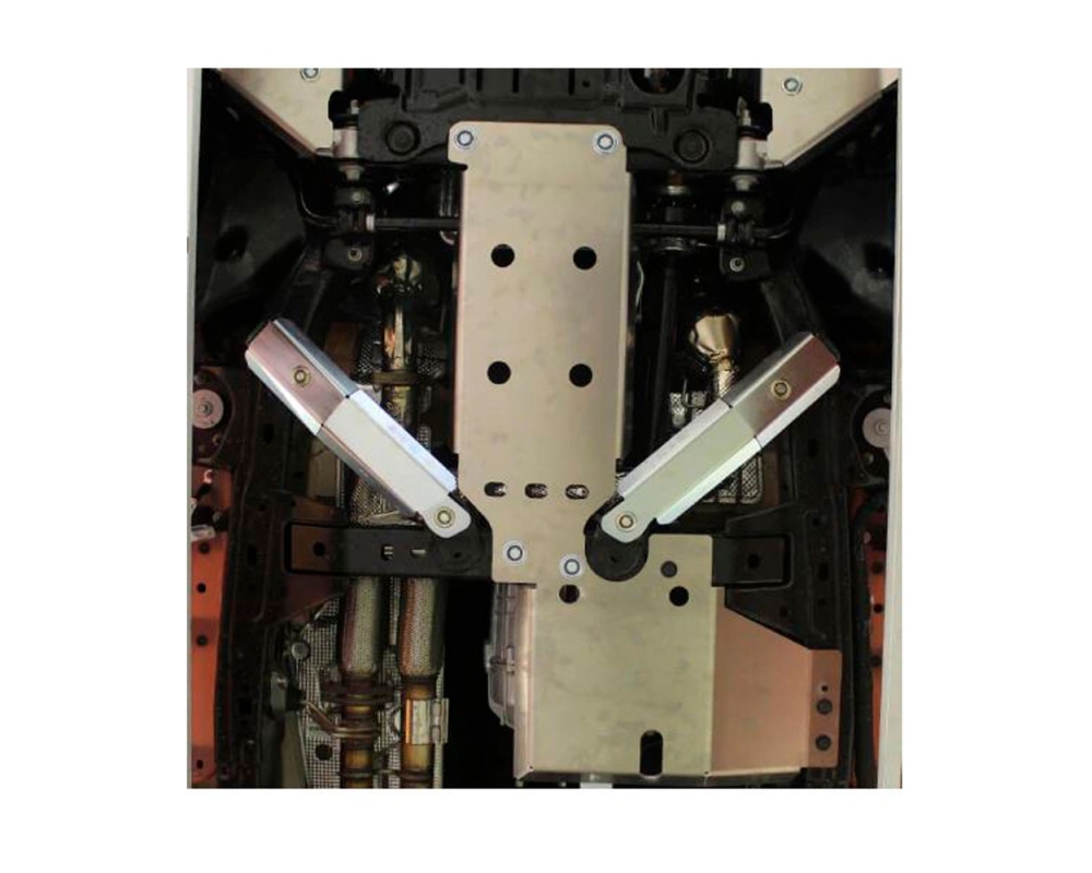 Diseñado específicamente para las versiones Bronco y Ranger Raptor (no compatible con motores 2.3 L) y ayuda a resguardar las piezas críticas del tren trasero ante impactos, piedras o terreno irregular: la traviesa de la transmisión y los brazos de suspensión.