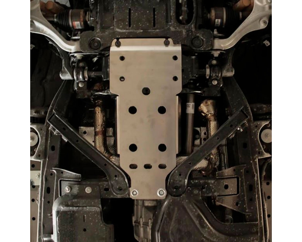 Su función principal es proteger la caja de cambios (gearbox) y la caja de transferencia ante impactos de piedras, rocas u obstáculos en conducción off-road, evitando daños en componentes críticos.