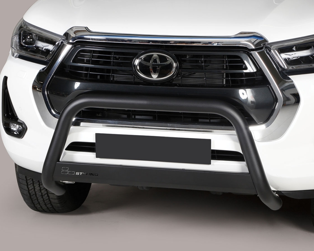 DEFENSA CENTRAL INOX NEGRO Ø63MM CON TRAVIESA. HOMOLOGACIÓN CE PARA TOYOTA HILUX REVO 2016- (SOLO 2021-)
