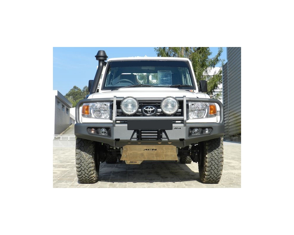 AFN | PARACHOQUES FRONTAL CON BASE DE CABRESTANTE CON FAROS INTEGRADOS. VERSIÓN ÁFRICA PARA TOYOTA LANDCRUISER J76-78-79 2007-