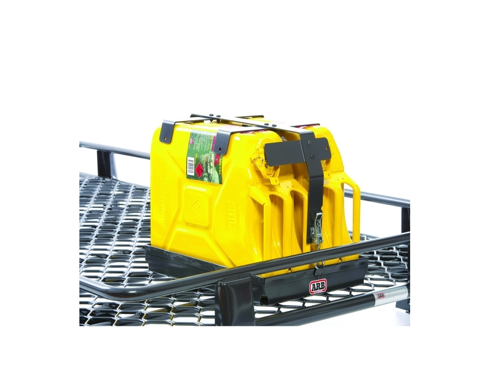 Adecuado para una gran variedad de portaequipajes ARB, un portabidones Jerry Can Holder es una solución fácil para asegurar bidones en el portaequipajes.