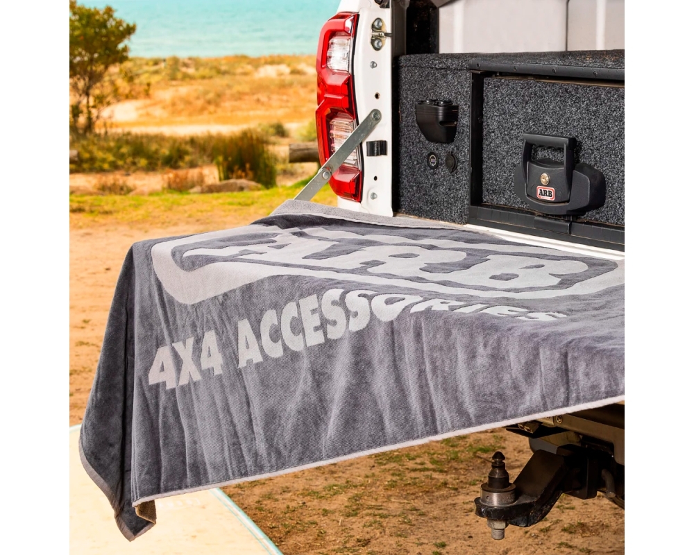 Perfecta para secarse después de comprobar la profundidad del agua, darse un chapuzón en un oasis del interior o simplemente disfrutar de un día de playa. Fabricada en algodón 100%, esta toalla extra grande cuenta con un práctico bolsillo de esquina con cremallera para guardar los objetos de valor. En un moderno color blanco y negro, la toalla presenta nuestro gran logotipo Adventure Awaits en la cara izquierda y el logotipo de ARB 4x4 Accessories en una doble franja blanca en el borde derecho. Se presenta dentro de una práctica bolsa de malla que puede servir como bolsa de lavandería o de viaje para la toalla.