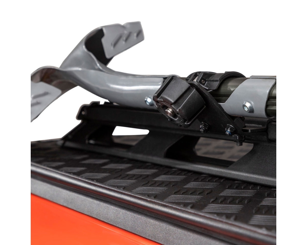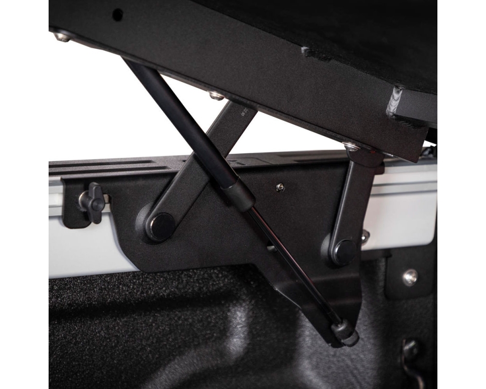 La bisagra de articulación de 4 barras desarrollada por ARB que incorpora HardLid permite que la plataforma del toldo se eleve y gire hacia atrás, proporcionando el espacio necesario entre la parte trasera de la cabina y los accesorios montados, como las barras deportivas de equipo original o las carpas de techo.