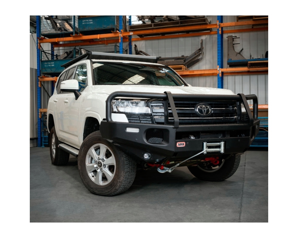 Los ingenieros de ARB han diseñado y desarrollado una nueva barra comercial para adaptarse a la serie 300 de Toyota LandCruiser. A diferencia de barras comerciales anteriores esta nueva barra toma algunas de sus señales de estilo de la barra de la cumbre y uitilises una abertura de la forma de la prensa como conductos de aire que proporcionan el flujo de aire directo a través de las aletas a los intercoolers. La barra comercial LC300 se adapta a las variantes GX y GXL y permite reutilizar los faros antiniebla originales en el panel bajo el alerón, con placas ciegas para las variantes sin faros antiniebla. Los sensores de aparcamiento están cortados con láser en la parte inferior y en las aletas de la barra para adaptarse a las variantes de vehículos con/sin sensores y a los paquetes de sensores opcionales.