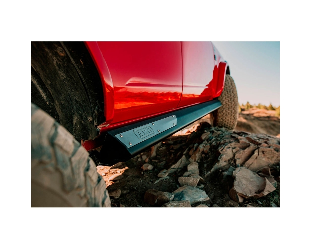 ARB Rock Sliders para adaptarse a la Ford Bronco de 4 puertas son un diseño de una sola pieza para distribuir la carga y proteger la zona vulnerable umbral inferior del vehículo cuando se utiliza fuera de la carretera. Los deslizadores multipliegue se montan directamente en el raíl del chasis del vehículo y no restringen el ángulo de inclinación de la rampa. Los Rock Sliders ARB están fabricados con chapa de acero de 4 mm cortada con láser, plegada y soldada por pulsación para proporcionar resistencia sin necesidad de material más grueso para mantener el peso al mínimo. Para complementar la gama de equipamiento de protección ARB Bronco, los Rock Sliders están acabados en pintura en polvo negra texturizada Integrit.