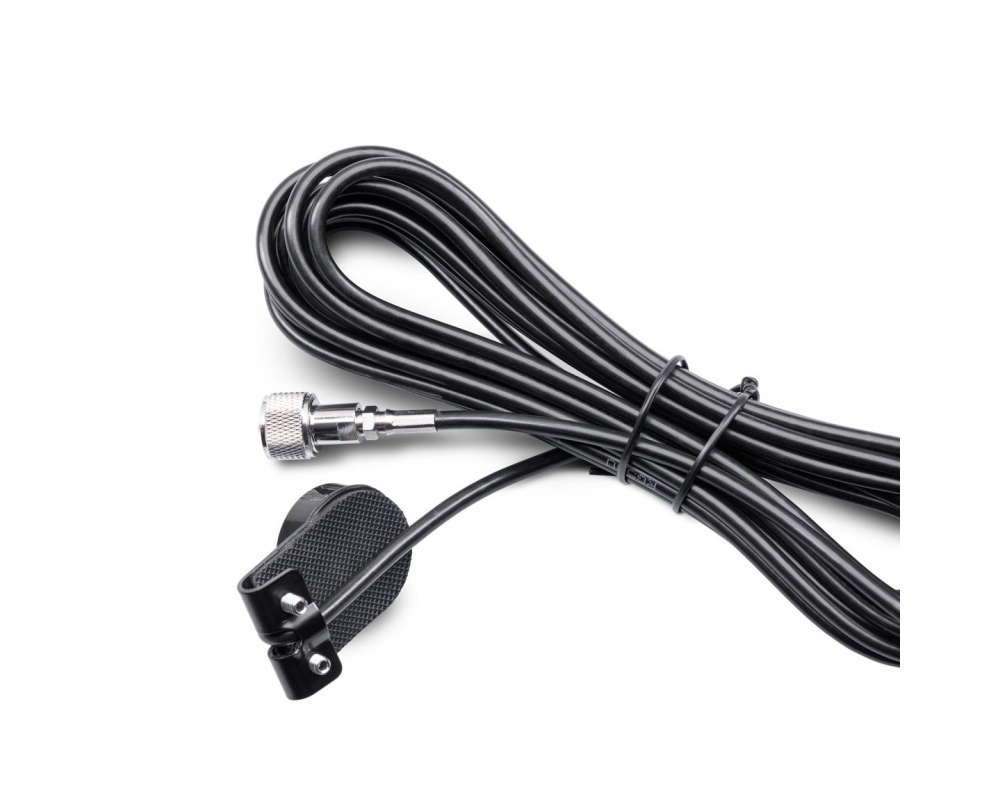 El cableado tiene 6 metros de longitud con soporte y PL. Gracias al conector SO239 se pueden utilizar todas las antenas equipadas con conector PL259.