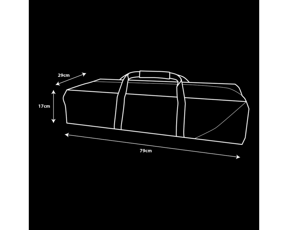 • Se pliega en un rectángulo compacto y se guarda en una bolsa de transporte (incluida) de 75 cm x 29 cm x 17 cm.