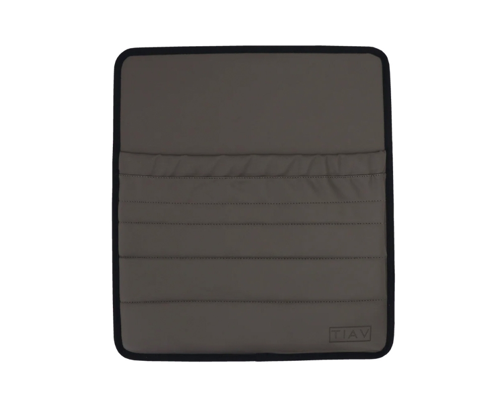 Presenta el logotipo TIAV en relieve.
