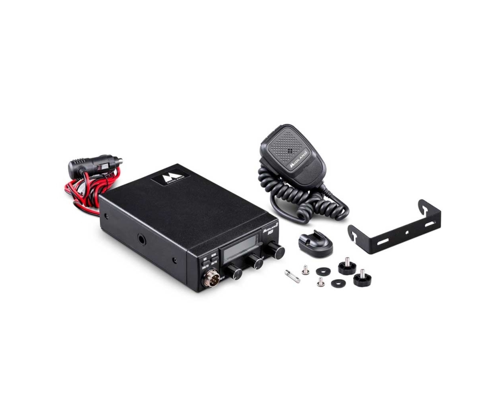 Radio CB MIDLAND 18, micrófono, soporte para micrófono, barra de fijacióntipo "U", piezas pequeñas