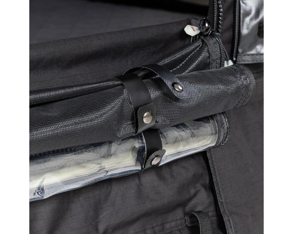 Amplia zona de descanso: 1430 x 2000 x 1130 mm. Colchón de espuma de 50 mm estilo "huevo" con funda acolchada extraíble. Caja de control eléctrico integrada. Iluminación LED interior y exterior para el campamento o el anexo opcional. Ventanas transparentes con cremallera, mosquitera y lona opaca. Ventilación extra en la parte superior para reducir la condensación. Techo panorámico para ver las estrellas y toldo con ventana transparente.