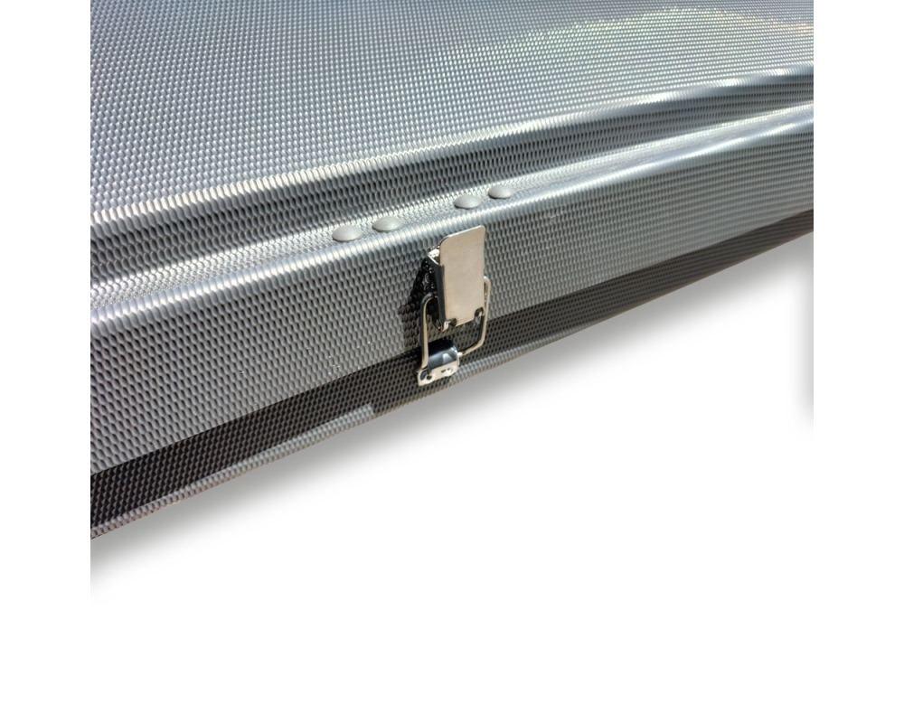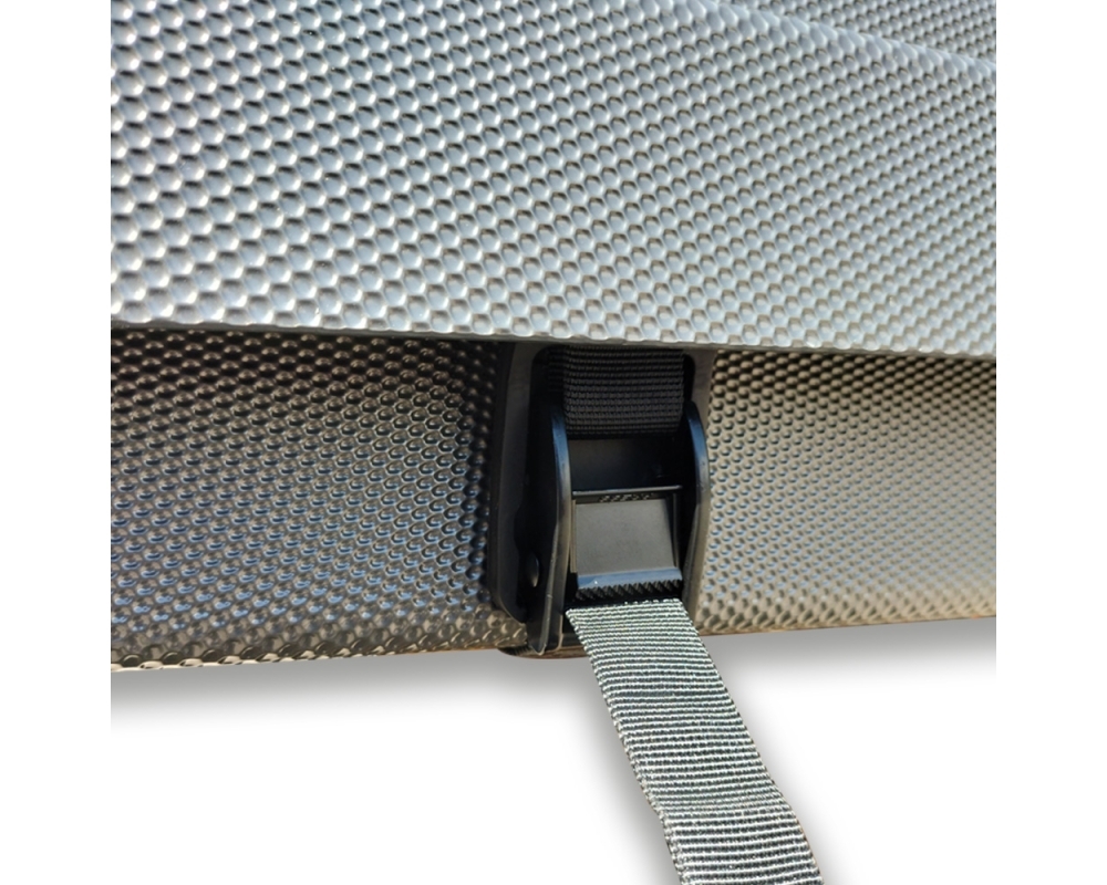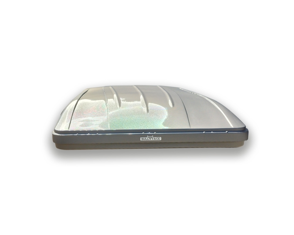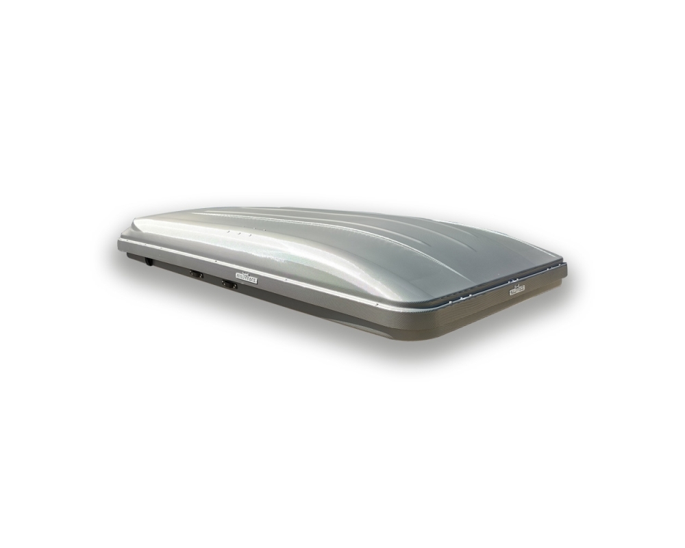 El acabado exterior en gris antracita le da un toque moderno y discreto, combinando fácilmente con cualquier tipo de vehículo. La terminación en plástico burbuja ofrece un excelente aislamiento térmico, manteniendo el interior protegido tanto del frío como del calor. Además, su sistema de apertura tipo cuña permite una excelente aerodinámica durante la conducción y una mayor resistencia al viento una vez abierta.