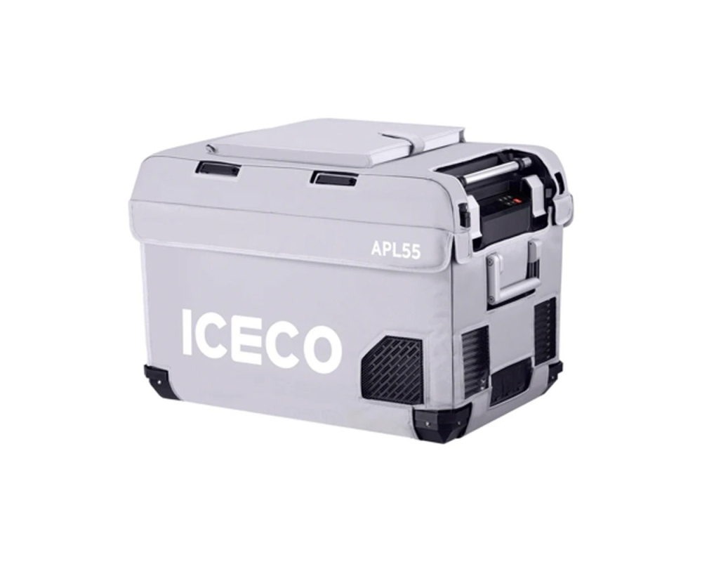 Capa protetora e isolante ICECO para refrigerador Série APL Dual Zone 55 L, projetada para melhorar o isolamento térmico, proteger contra água e facilitar a organização graças aos seus múltiplos bolsos.