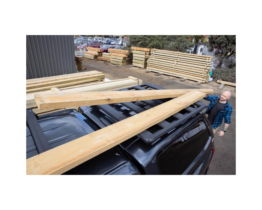 Aumente a capacidade de carga do seu Mitsubishi Triton (2024+) com o BaseRack ajustável Ascent para capota. Seu design permite que a plataforma fique perfeitamente alinhada com as barras da cabine, oferecendo uma superfície de carga nivelada e segura para transportar até 100 kg de forma prática e eficiente.