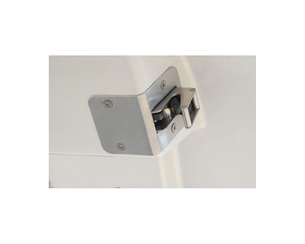 É fabricado em fibra de vidro, possui sistema de montagem no qual não é necessário furar o veículo para instalação. Além de sistema de travamento em aço inox que garante a segurança do interior da caixa.